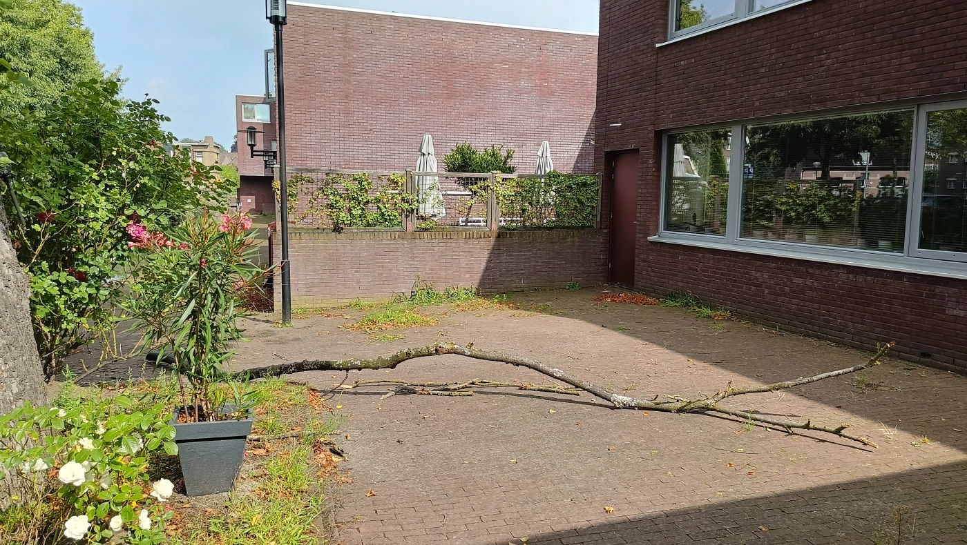 De oude els aan de Aakade laat nu wel heel grote takken vallen