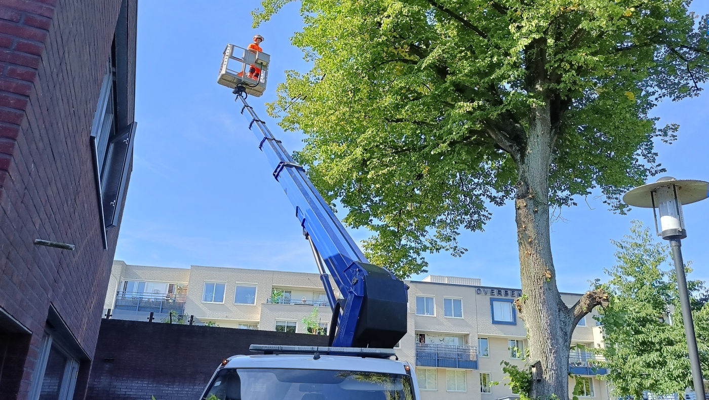 Zaterdag melding gemaakt, nu maandag 4 sept. waren de snoeiende boys al aanwezig.
